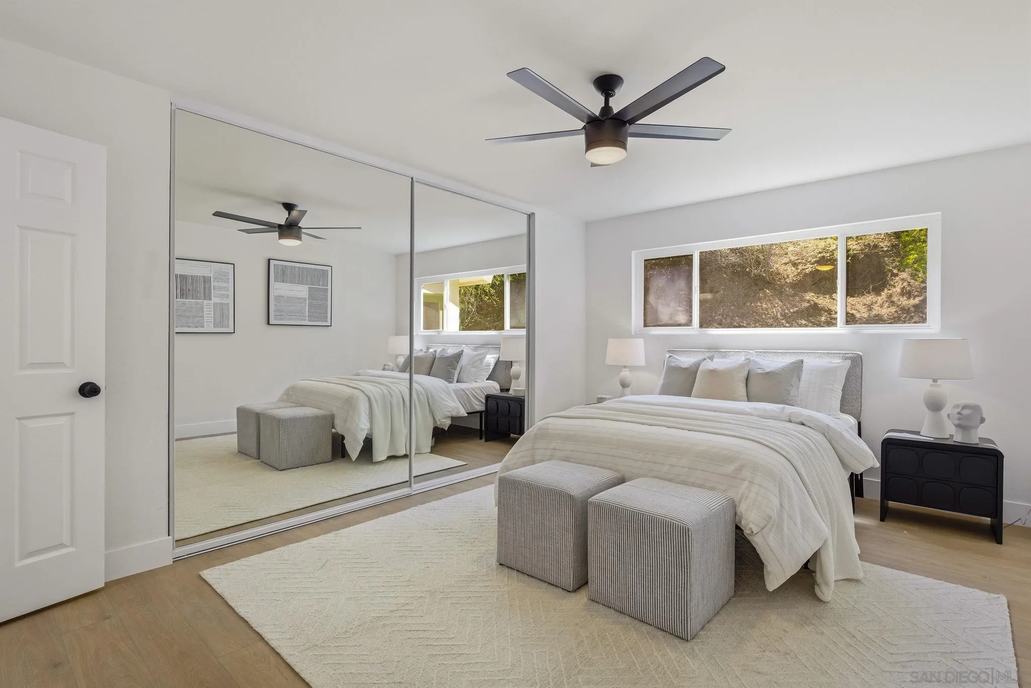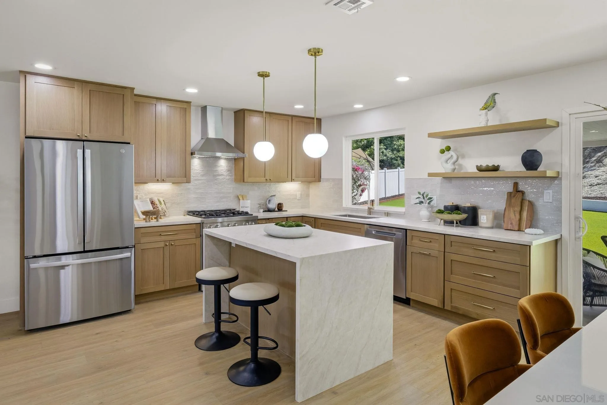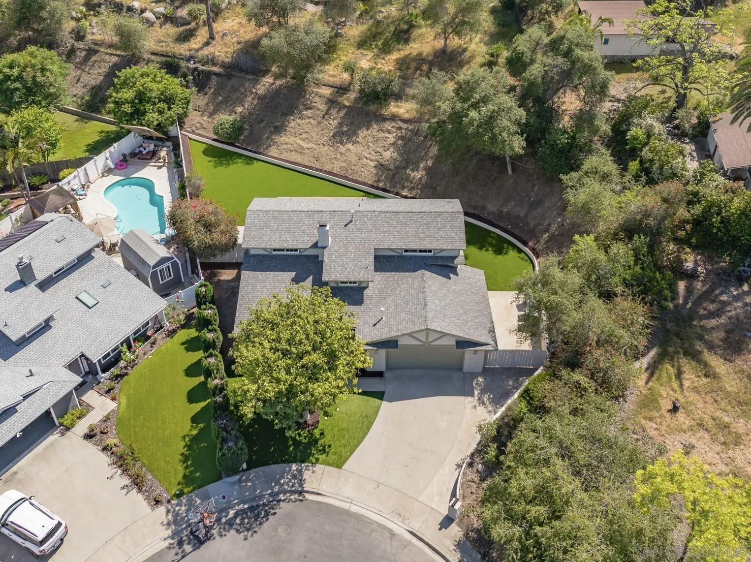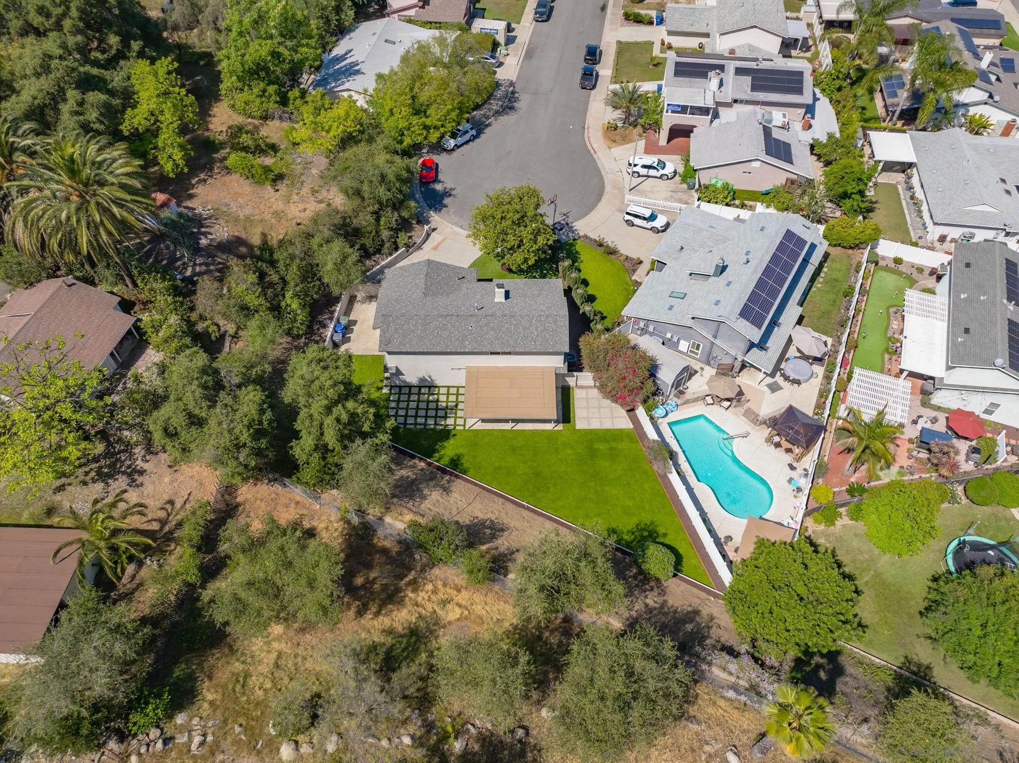 Welcome to one of the most exceptional homes on the street - an exquisitely remodeled residence at the end of a premier cul-de-sac, offering privacy and sweeping views of the Mt. Helix foothills. Set on an expansive 9,500 sq ft lot, this property delivers impressive space both front and back, ideal for entertaining and everyday living. This 4-bedroom, 2.5-bath home spans 1,870 sq ft and features a desirable main-level primary suite. The stunning, fully remodeled kitchen showcases sleek finishes and premium ZLINE and GE appliances, designed with entertaining in mind. Upgrades throughout include new flooring, baseboards, modern lighting and fixtures, fresh interior and exterior paint, and beautifully remodeled bathrooms. The spacious, newly turfed backyard offers endless potential, while the extra-wide 2-car garage and generous driveway provide ample parking. A true statement home combining modern style, functional living, and a coveted location.