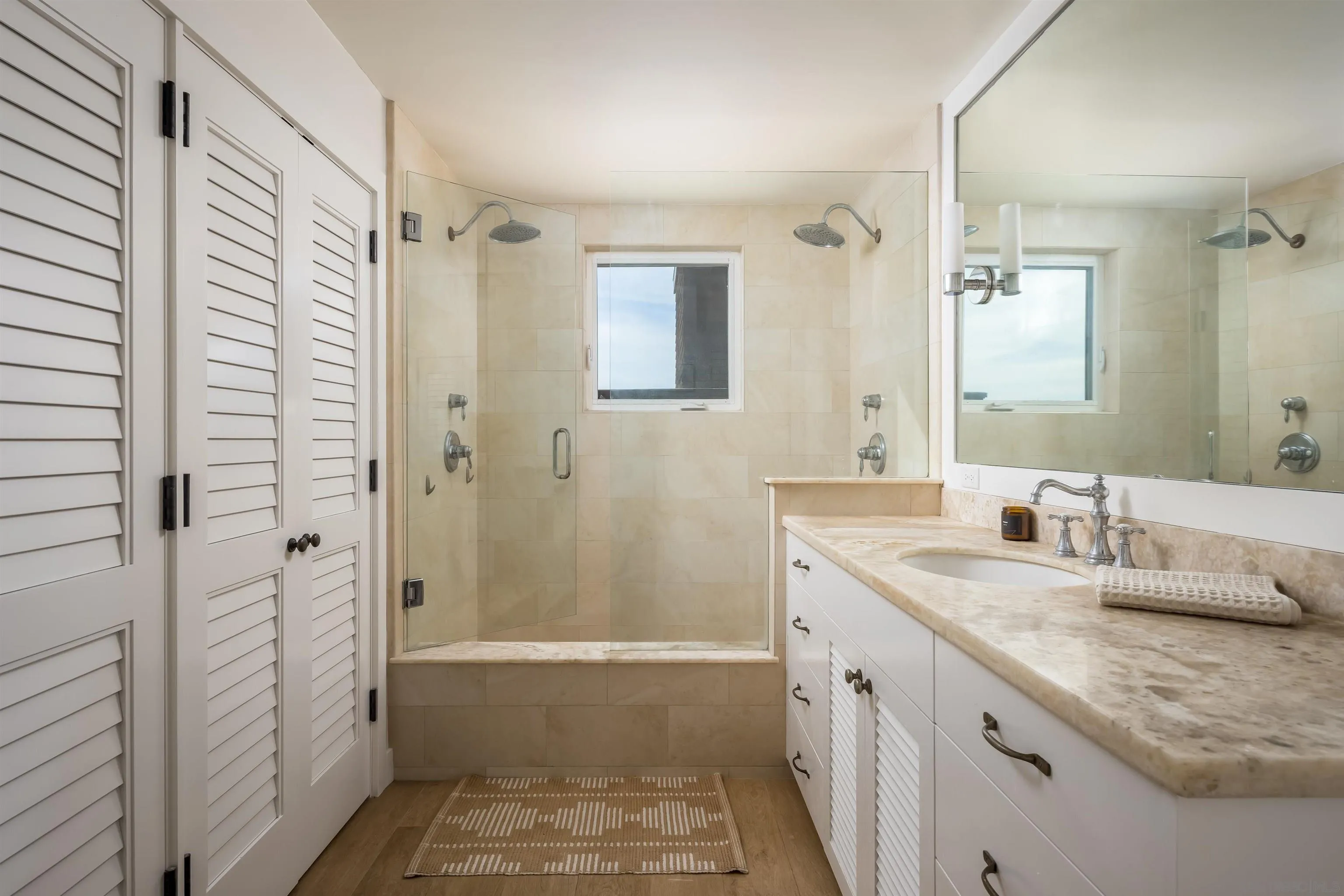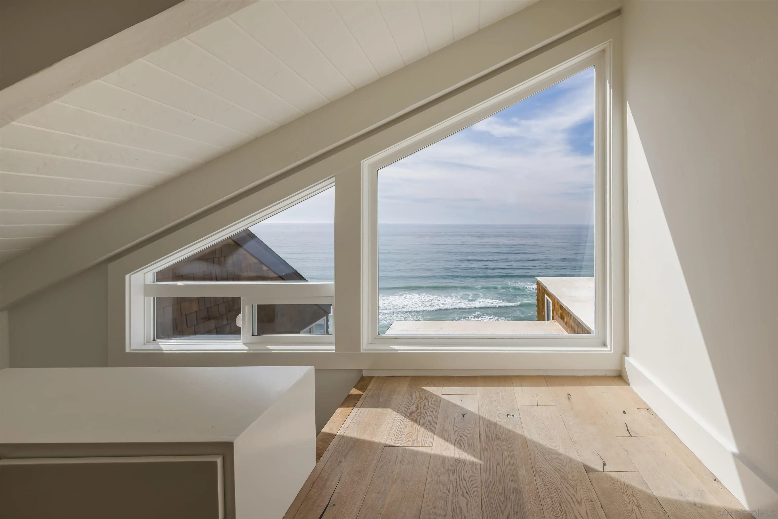 Uniquely remodeled with a one-of-a-kind reimagined floorplan, this exceptional residence captures sweeping whitewater ocean views from a superior elevation along Solana Beach's coveted South Sierra Avenue. Flooded with natural light from four exposures for sunrise and sunset views, the open-concept design lives more like a private single-family home than a condominium. Includes owned solar, a true rarity for attached living. Expansive nano glass doors frame the ocean view and create seamless indoor-outdoor flow. Three distinct decks--crafted from premium Ipe wood--capture varying sun exposures throughout the day and seasons. Multiple windows have been added and enlarged, transforming the space into something far beyond the standard condo experience. The thoughtfully designed layout includes two additional loft spaces ideal for guest sleeping areas, a home office, reading retreat, or yoga studio. The primary suite is exceptionally private and features its own exterior entrance, offering flexibility for guests or multigenerational living. Interior finishes are curated and refined: radiant heated floors, ethernet wiring, an expansive open kitchen with exquisite natural stone and oil-finished cabinetry, and beautifully appointed bathrooms clad in stone and tile. The spa-inspired shower comfortably accommodates two and features dual shower heads and controls. A truly rare offering with no comparable along this destination stretch of coastline.